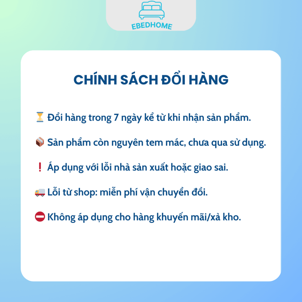 Ebedhome không chỉ chú trọng đến thẩm mỹ mà còn đặt trải nghiệm giấc ngủ của khách hàng làm trung tâm. Từng đường may chắc chắn, độ bền cao cùng khả năng giữ form tốt giúp sản phẩm luôn êm ái và bền đẹp theo thời gian, xứng đáng là lựa chọn lý tưởng cho một giấc ngủ trọn vẹn và chất lượng.